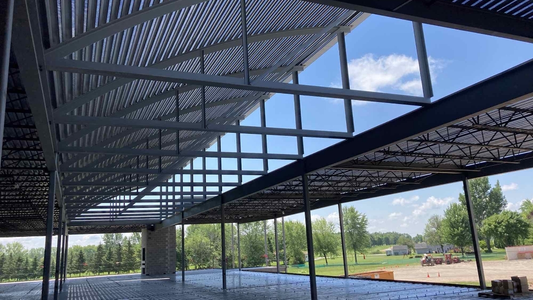 Furnish and install joist, deck, structural steel, and custom rolled barrel trusses.